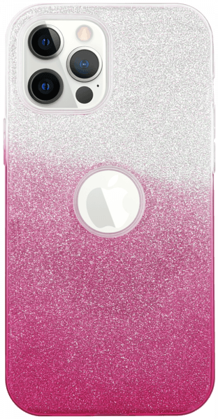 Tervezhető Apple iPhone 12 Pro Max szilikon tok csillogó hátlap logó kihagyós rózsaszín/ezüst