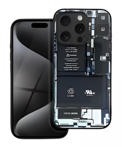 A tok hátlapja a telefon belső szerkezetére emlékeztető mintázattal rendelkezik, amit a szélek elegáns, matt fekete kivitele egészít ki, hogy modern és szokatlan megjelenést nyújtson.