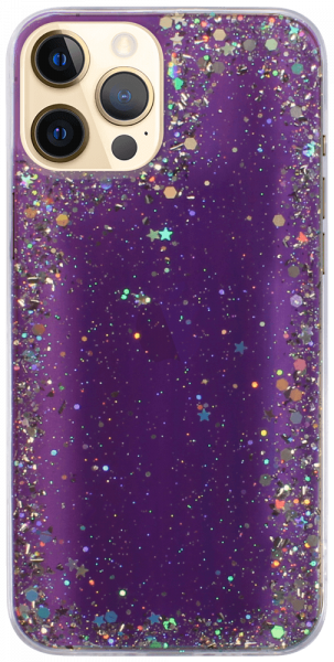 Apple iPhone 12 Pro kemény hátlap szilikon kerettel flitteres átlátszó lila leírása
