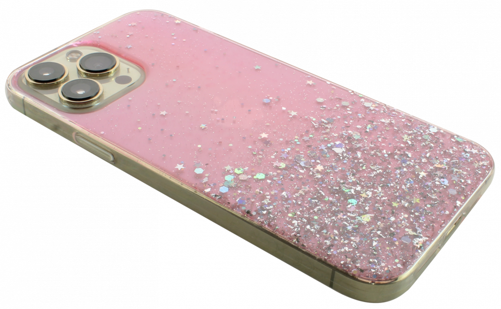 Apple iPhone 13 Pro Max kemény hátlap szilikon kerettel flitteres átlátszó rózsaszín leírása