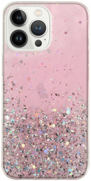 Apple iPhone 13 Pro kemény hátlap szilikon kerettel flitteres átlátszó rózsaszín leírása