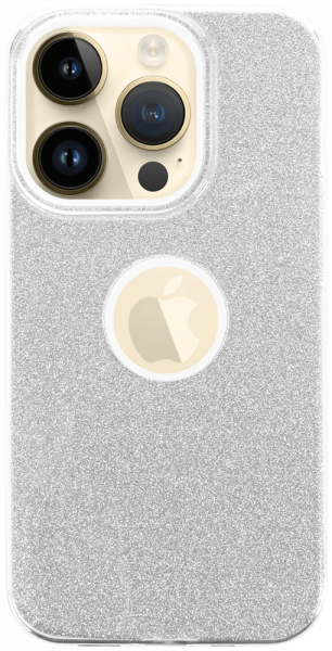 Tervezhető Apple iPhone 14 Pro szilikon tok csillogó hátlap logó kihagyós ezüst