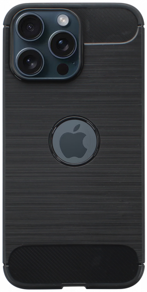 Tervezhető Apple iPhone 15 Pro Max ütésálló szilikon tok szálcsiszolt-karbon minta légpárnás sarok logó kihagyós fekete