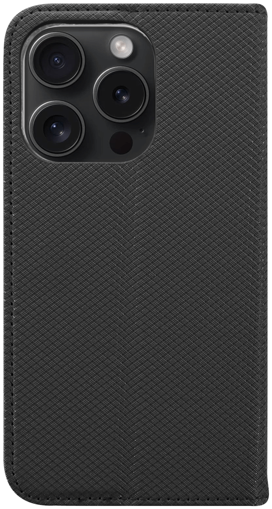 Apple iPhone 15 Pro oldalra nyíló flipes bőrtok rombusz mintás fekete leírása