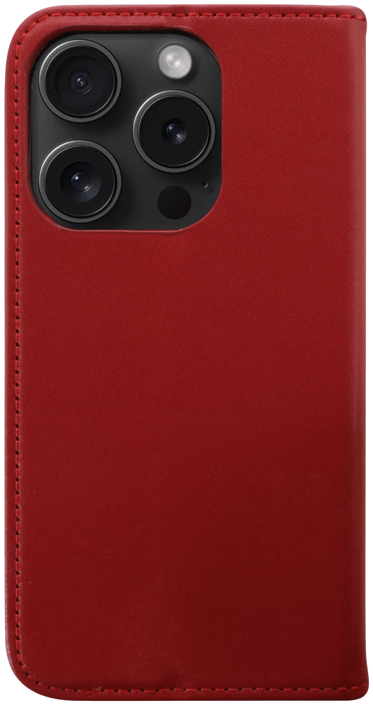 Tervezhető Apple iPhone 15 Pro oldalra nyíló flipes bőrtok valódi bőr piros