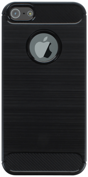 Tervezhető Apple iPhone 5 ütésálló szilikon tok szálcsiszolt-karbon minta légpárnás sarok logó kihagyós fekete