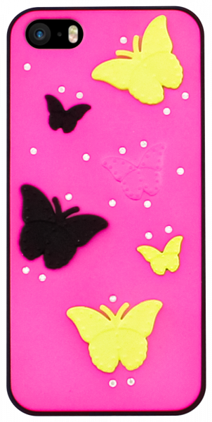 Apple iPhone 5S kemény hátlap 3D színes pillangókkal és strasszal rózsaszín leírása