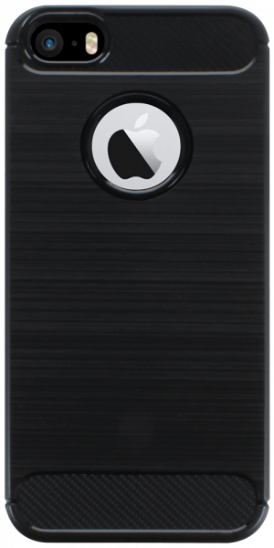 Tervezhető Apple iPhone 5S ütésálló szilikon tok szálcsiszolt-karbon minta légpárnás sarok logó kihagyós fekete
