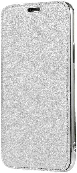 Tervezhető Apple iPhone 6 oldalra nyíló flipes bőrtok átlátszó szilikon hátlap, fémhatású keret ezüst