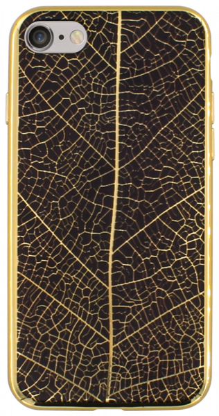 Apple iPhone 6 szilikon tok falevél mintás arany színű keret fekete leírása