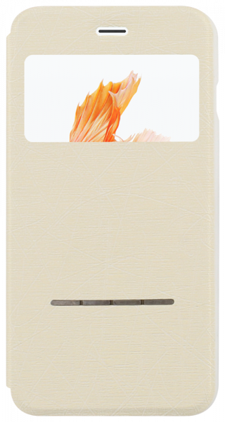 Apple iPhone 6S Plus oldalra nyíló flipes műanyag tok View Window bézs leírása