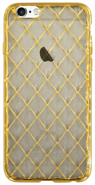 Apple iPhone 6S szilikon tok 3D rombusz mintás arany színű keret átlátszó leírása