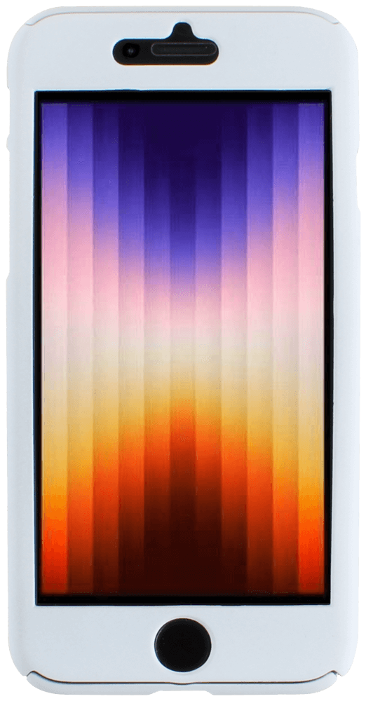 Apple iPhone 7 kemény hátlap logó kihagyós gumírozott 360 fokos védelem ajándék üvegfóliával fehér leírása