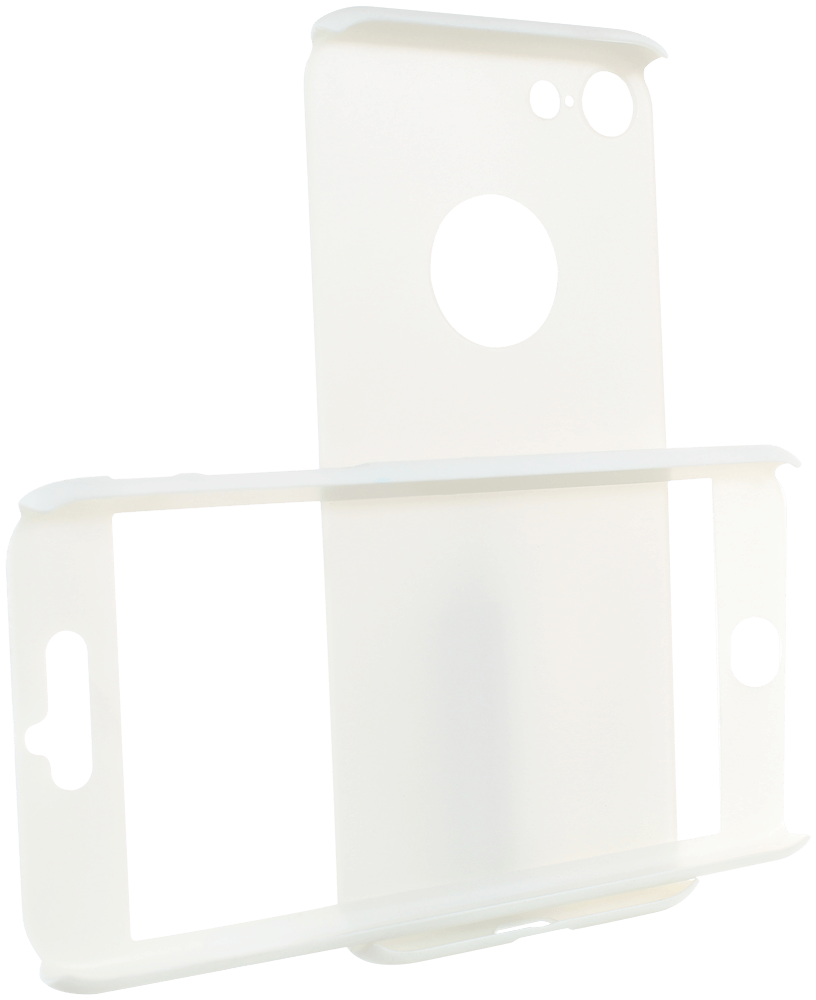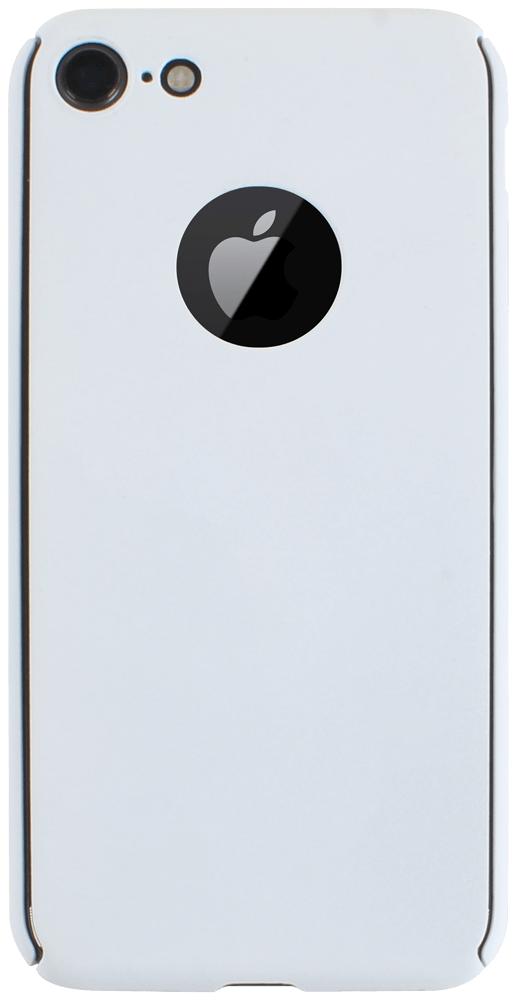 Apple iPhone 7 kemény hátlap logó kihagyós gumírozott 360 fokos védelem ajándék üvegfóliával fehér