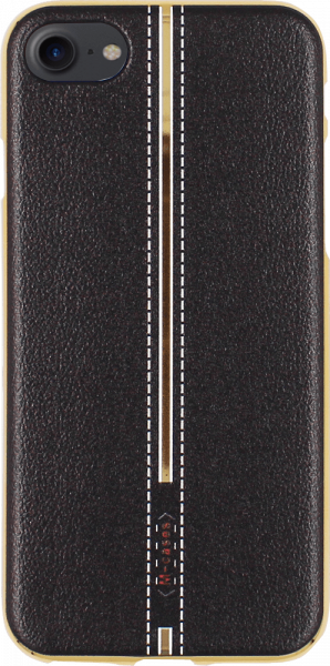 Apple iPhone SE (2022) szilikon tok bőrhatású középen varrott mintával fekete arany kerettel leírása