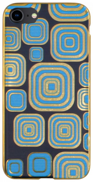 Apple iPhone SE (2022) szilikon tok négyzet mintás, arany kerettel fekete leírása