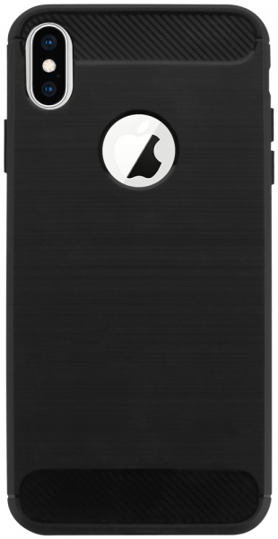 Tervezhető Apple iPhone XS Max ütésálló szilikon tok szálcsiszolt-karbon minta légpárnás sarok logó kihagyós fekete