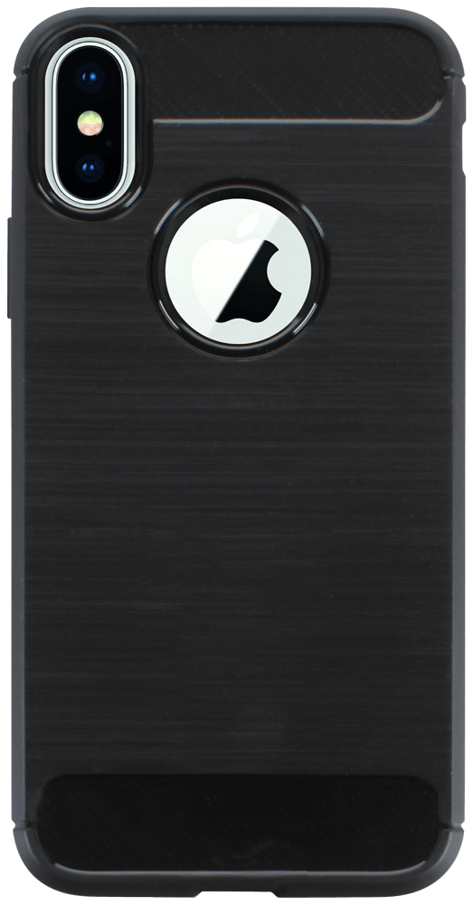 Tervezhető Apple iPhone XS ütésálló szilikon tok szálcsiszolt-karbon minta légpárnás sarok logó kihagyós fekete
