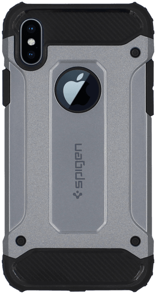 Tervezhető Apple iPhone XS ütésálló tok gyári SGP logó kihagyós légpárnás sarkas, hibrid Forcell Armor ezüst