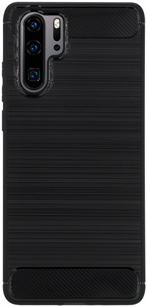 Tervezhető Huawei P30 Pro ütésálló szilikon tok szálcsiszolt-karbon minta légpárnás sarok fekete