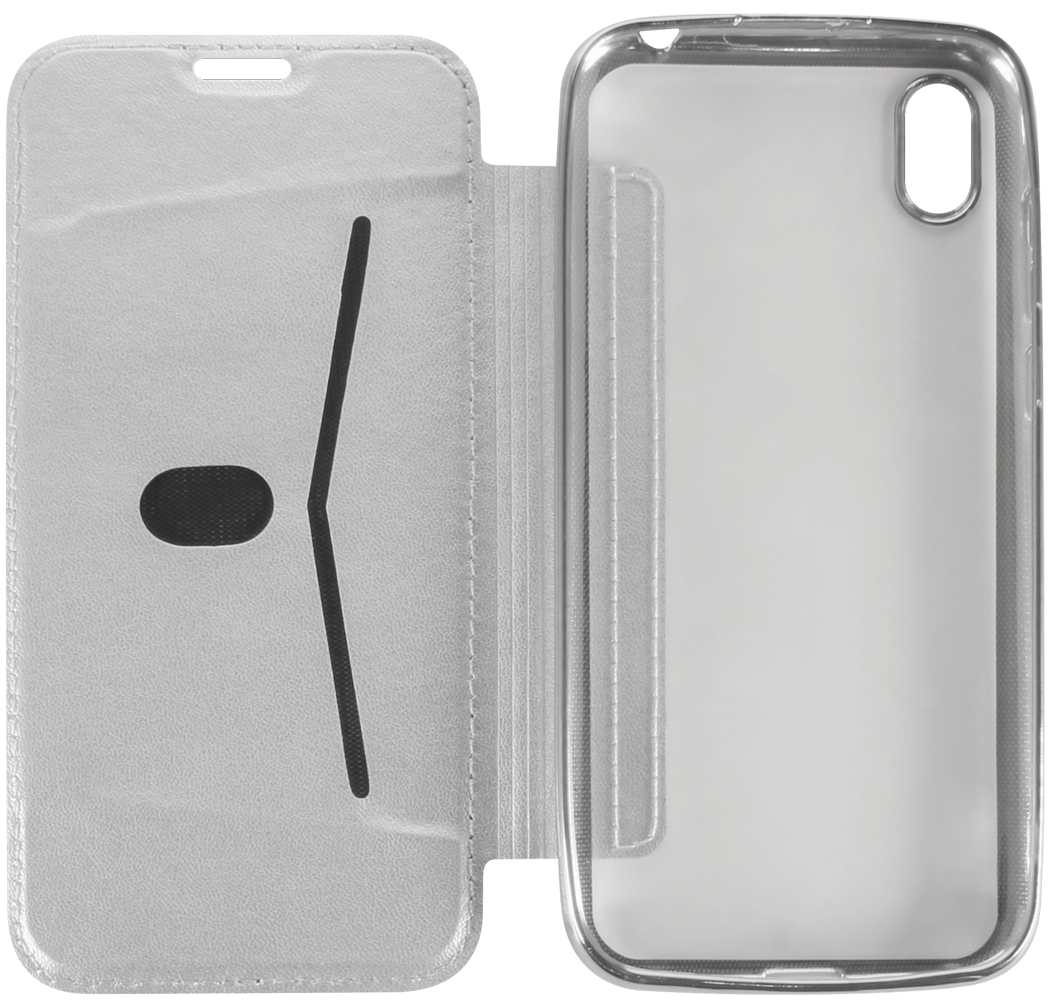 Indulhat a tervezésHuawei Y5 2019 oldalra nyíló flipes bőrtok átlátszó szilikon hátlap, fémhatású keret ezüst leírása