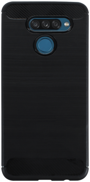 Tervezhető LG K50S ütésálló szilikon tok szálcsiszolt-karbon minta légpárnás sarok fekete
