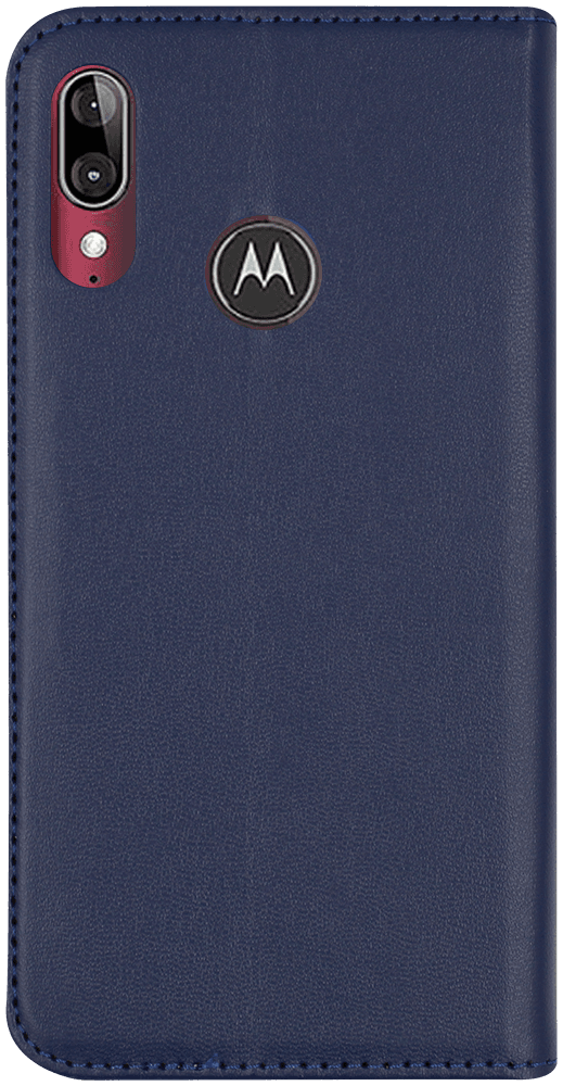 Tervezhető Motorola Moto E6 Plus oldalra nyíló flipes bőrtok asztali tartó funkciós sötétkék