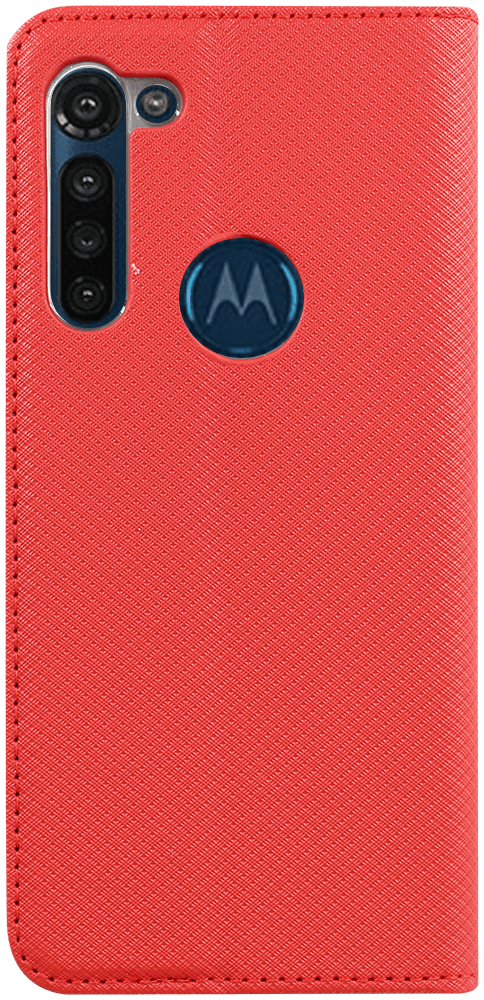 Tervezhető Motorola Moto G8 Power oldalra nyíló mágneses flipes bőrtok rombusz mintás piros