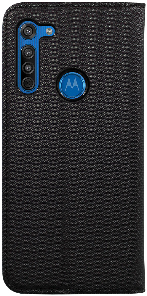 Tervezhető Motorola Moto G8 oldalra nyíló flipes bőrtok rombusz mintás fekete