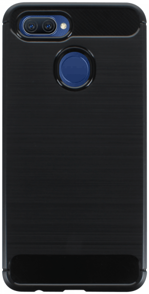 Tervezhető Oppo A12s ütésálló szilikon tok szálcsiszolt-karbon minta légpárnás sarok fekete