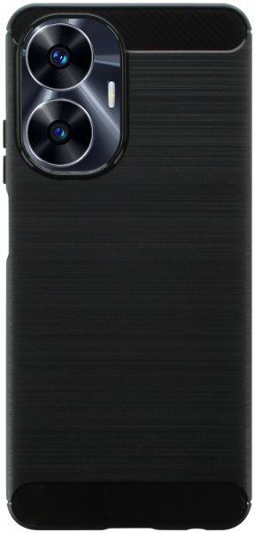 Tervezhető Realme C55 ütésálló szilikon tok szálcsiszolt-karbon minta légpárnás sarok fekete