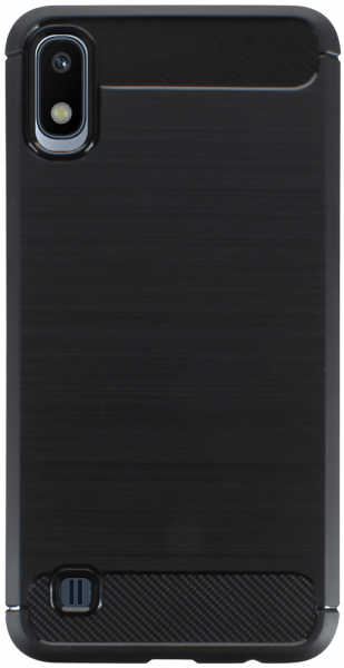 Tervezhető Samsung Galaxy A10 (SM-A105F) ütésálló szilikon tok szálcsiszolt-karbon minta légpárnás sarok fekete