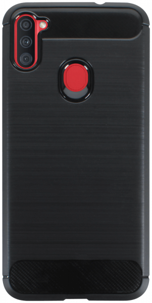 Tervezhető Samsung Galaxy A11 (SM-A115F) ütésálló szilikon tok szálcsiszolt-karbon minta légpárnás sarok fekete
