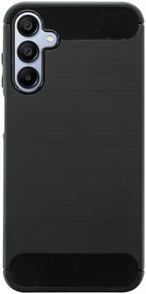 Tervezhető Samsung Galaxy A15 5G (SM-A156B) ütésálló szilikon tok szálcsiszolt-karbon minta légpárnás sarok fekete