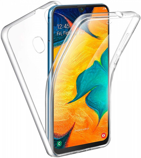Indulhat a tervezésSamsung Galaxy A20 (SM-205) kemény hátlap szilikon előlap 360 ° védelem átlátszó leírása