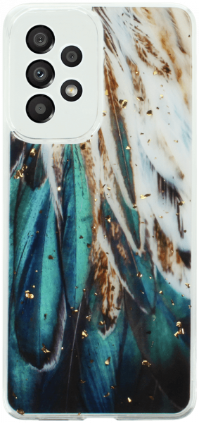 Samsung Galaxy A33 5G (SM-A336) kemény hátlap kameravédővel Gold Glam Feathers leírása