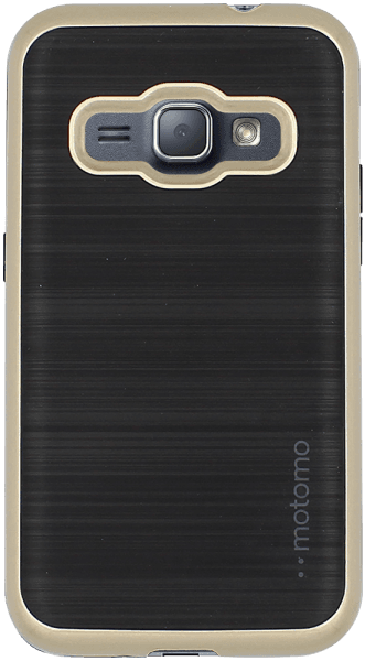 Samsung Galaxy J1 2016 (J120) szilikon tok arany műanyag keret szálcsiszolt minta fekete leírása