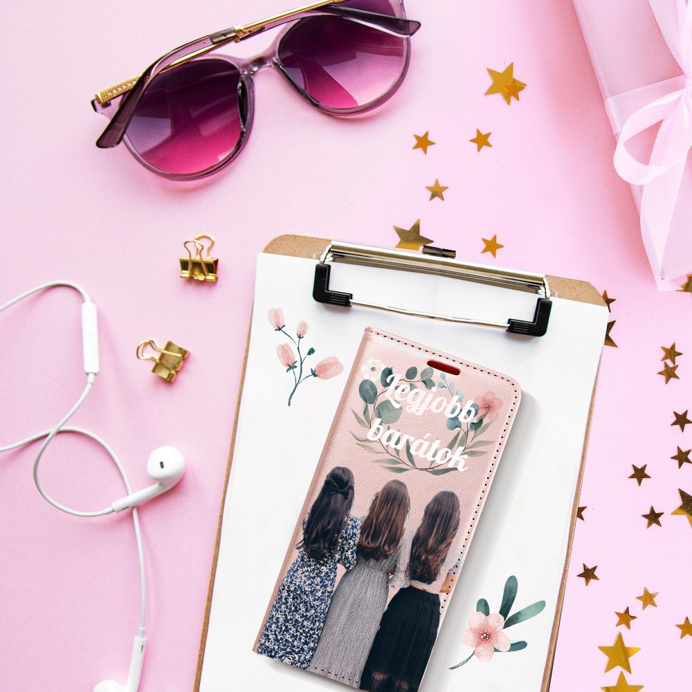 Tervezhető Samsung Galaxy J3 2016 (J320) oldalra nyíló flipes bőrtok asztali tartó funkciós rozéarany