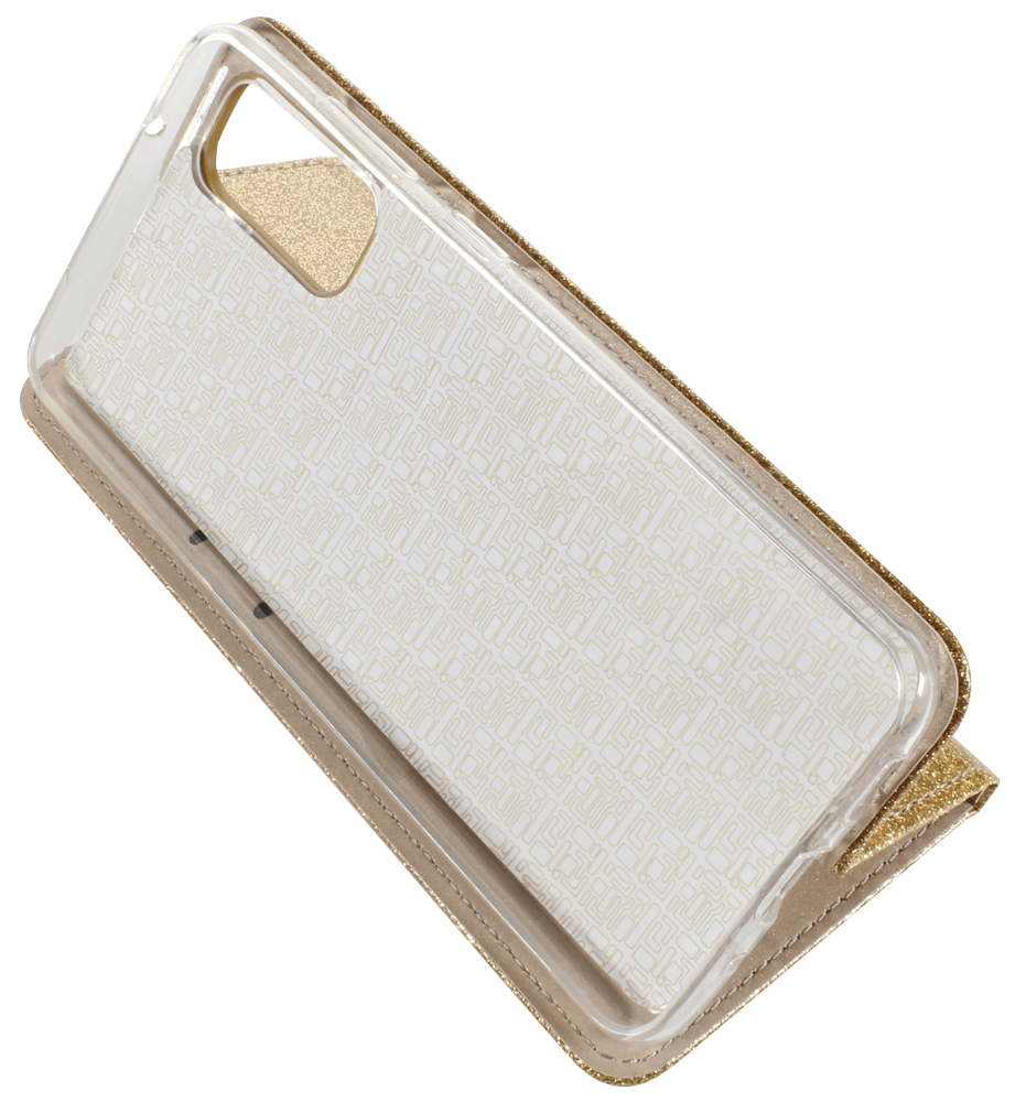 Indulhat a tervezésSamsung Galaxy S20 5G (SM-G981F) oldalra nyíló flipes bőrtok csillámos arany leírása