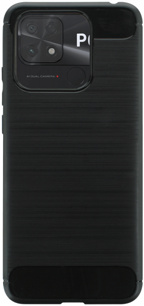 Tervezhető Xiaomi Poco C40 ütésálló szilikon tok szálcsiszolt-karbon minta légpárnás sarok fekete