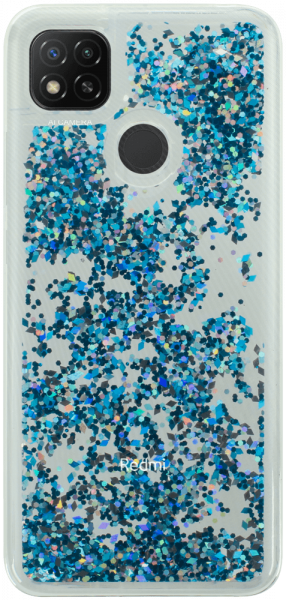 Tervezhető Xiaomi Redmi 9C szilikon tok gyári Liquid Sparkle kék/ezüst
