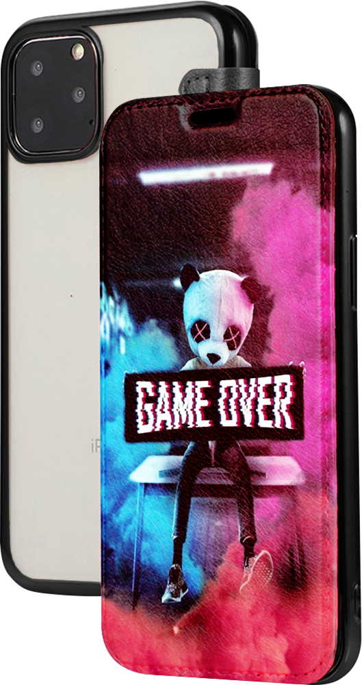 Tervezhető Xiaomi Redmi Note 8 oldalra nyíló flipes bőrtok átlátszó szilikon hátlap, fémhatású keret fekete